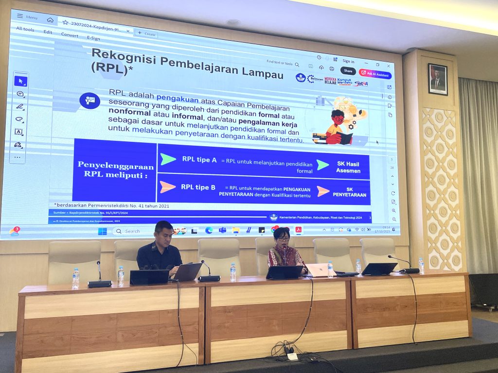 Ditambahkan Gandes, melalui sosialisasi ini, diharapkan akan semakin banyak program studi yang menyelenggarakan program RPL, serta untuk Prodi yang akan membuka RPL agar sesuai dengan ketentuan dan persyaratan yang ditentukan dari Kemdiktisaintek.