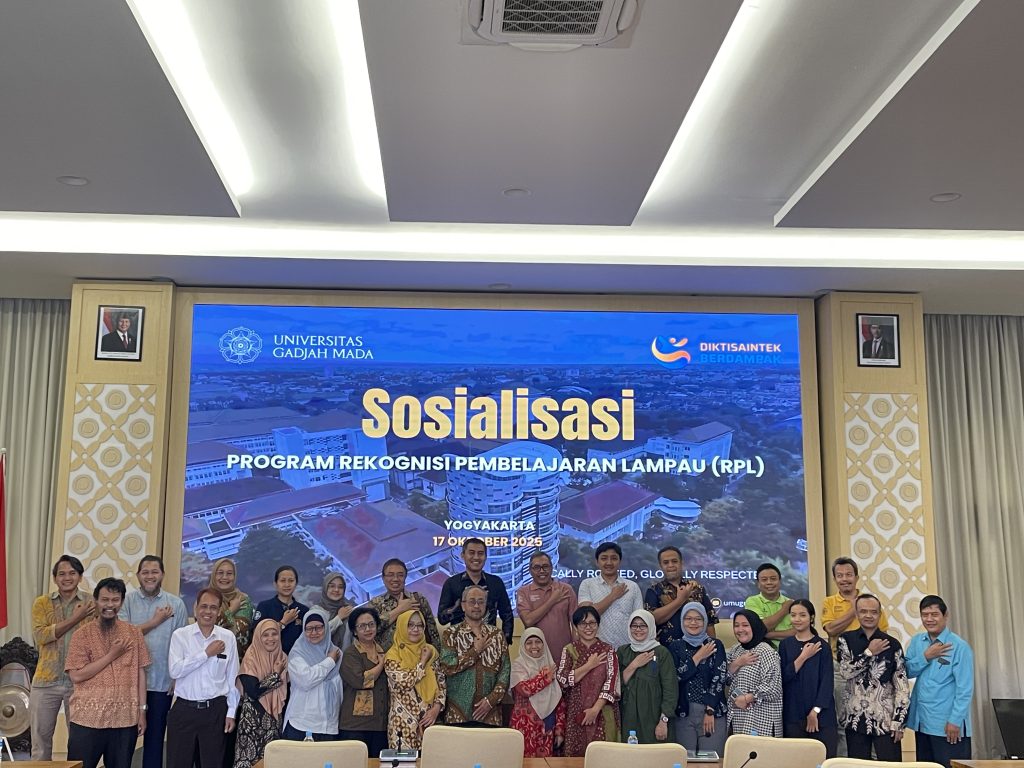 Universitas Gadjah Mada (UGM) menyelenggarakan sosialisasi Program Rekognisi Pembelajaran Lampau (RPL) sebagai bagian dari komitmen mendukung pendidikan sepanjang hayat dan memperluas akses ke jenjang pendidikan tinggi di Ruang Multimedia Gedung Pusat UGM (17/10). Sosialisasi digelar dalam 2 batch. Batch 1 dihadiri oleh para Wakil Dekan, Ketua Program Studi Sarjana, Sarjana Terapan, dan Profesi dari seluruh fakultas dan sekolah di lingkungan UGM. Sedangkan batch 2, nantinya ditujukan untuk Kepala Program Studi Magister pada 22 Oktober 2025.